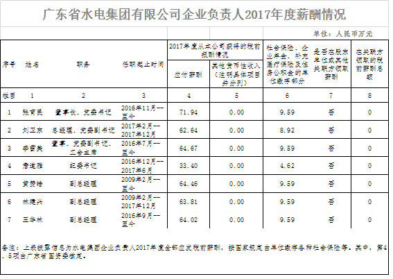 为贯彻落实深化省属企业负责人薪酬制度改革精神,按照省国资委关于做好2017年省属企业负责人薪酬信息披露工作的通知要求,现将金年会平台、广东省水电集团有限公司企业负责人薪酬薪酬信息披露如下: