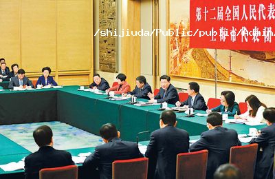 ·十二届全国人大二次会议上海代表团现场