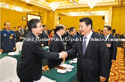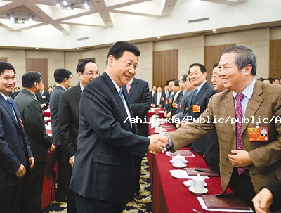 (3月4日下午,习近平看望参加全国政协十二届四次会议的民建、工商联委员并参加联组会。)