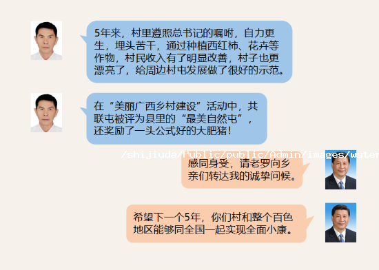 习近平总书记开心地笑了,他用“感同身受”一词表达自己的高兴和欣慰,请老罗向乡亲们转达自己的诚挚问候。总书记说,希望下一个5年,你们村和整个百色地区能够同全国一起实现全面小康。